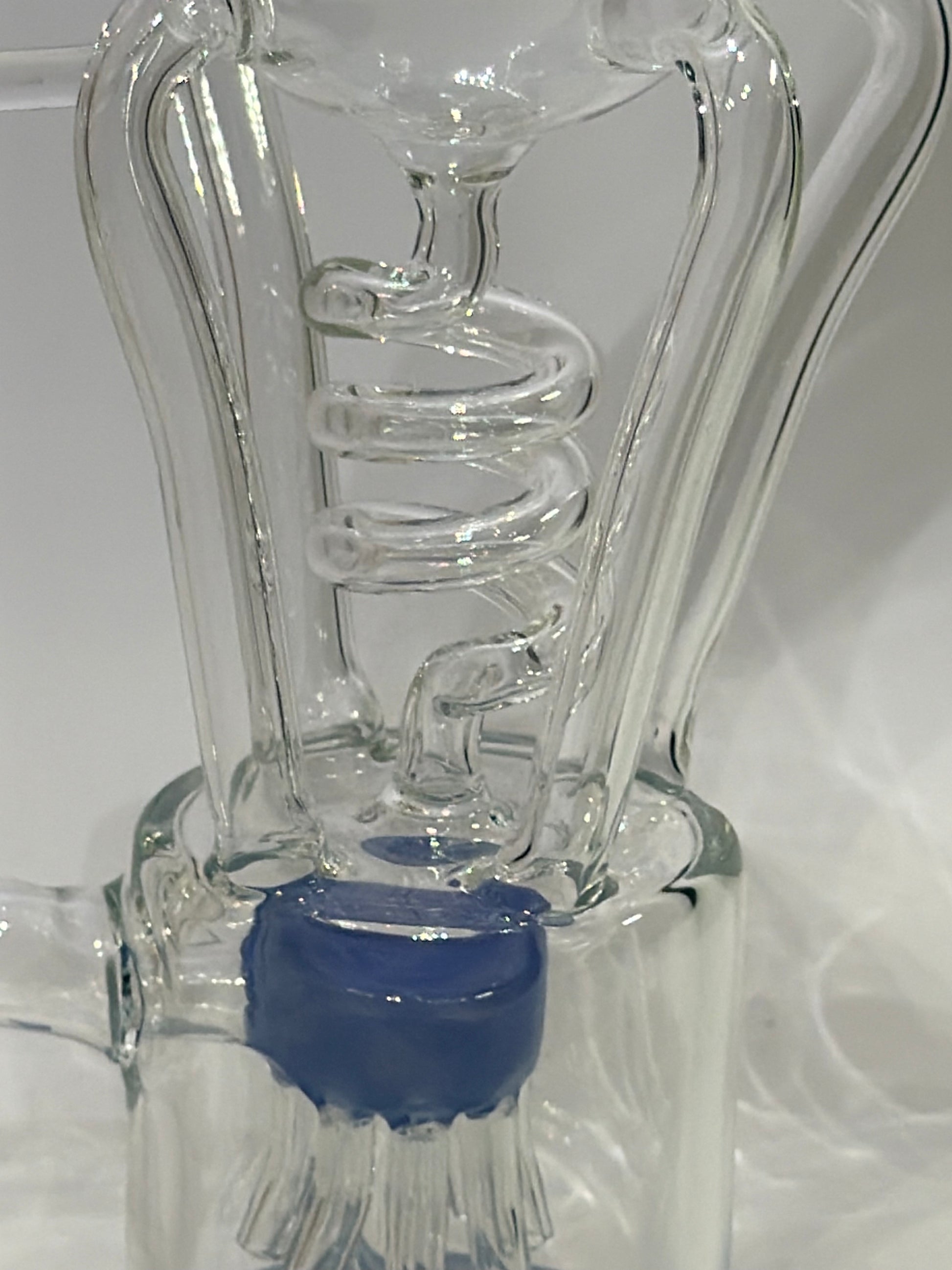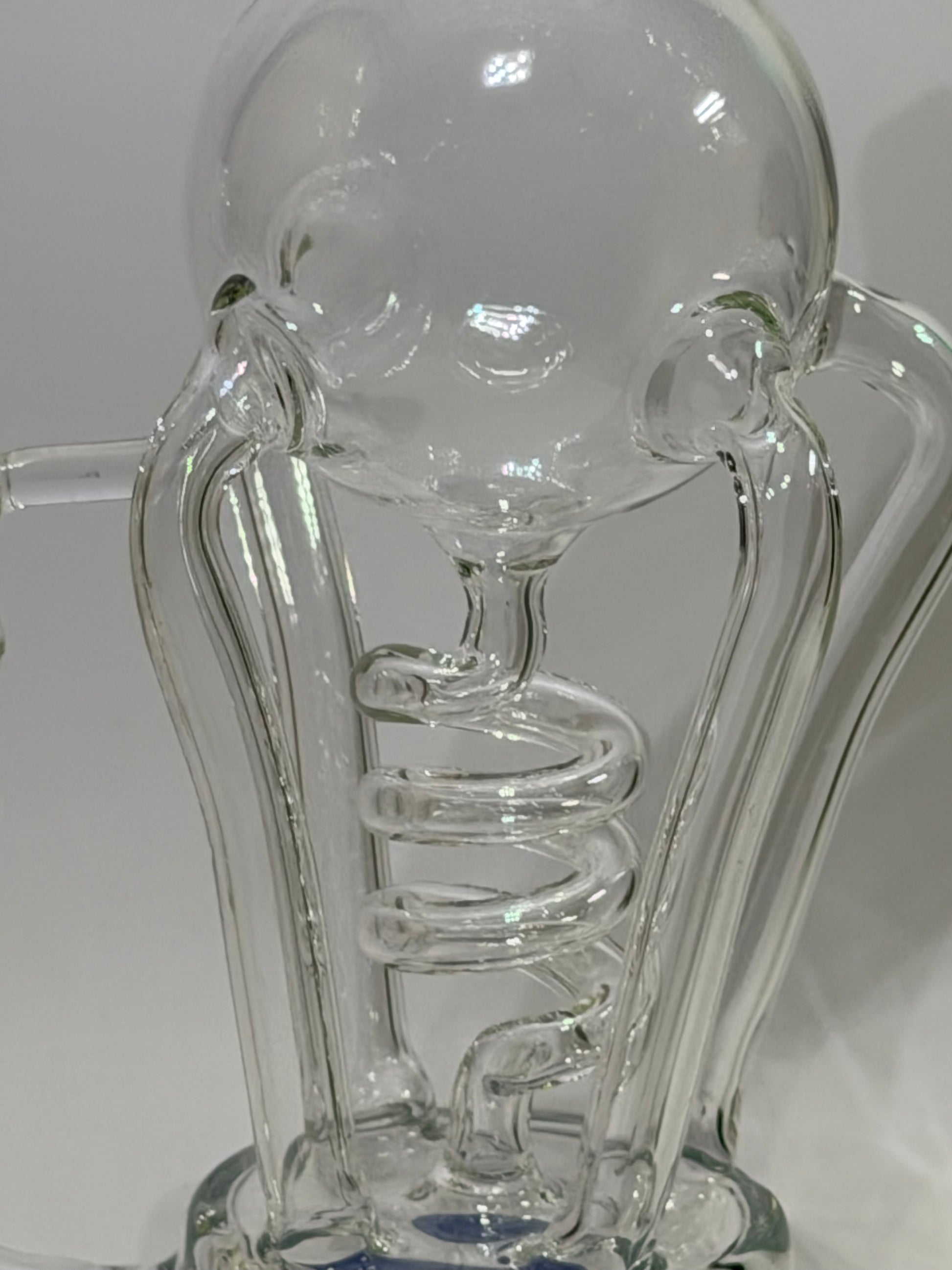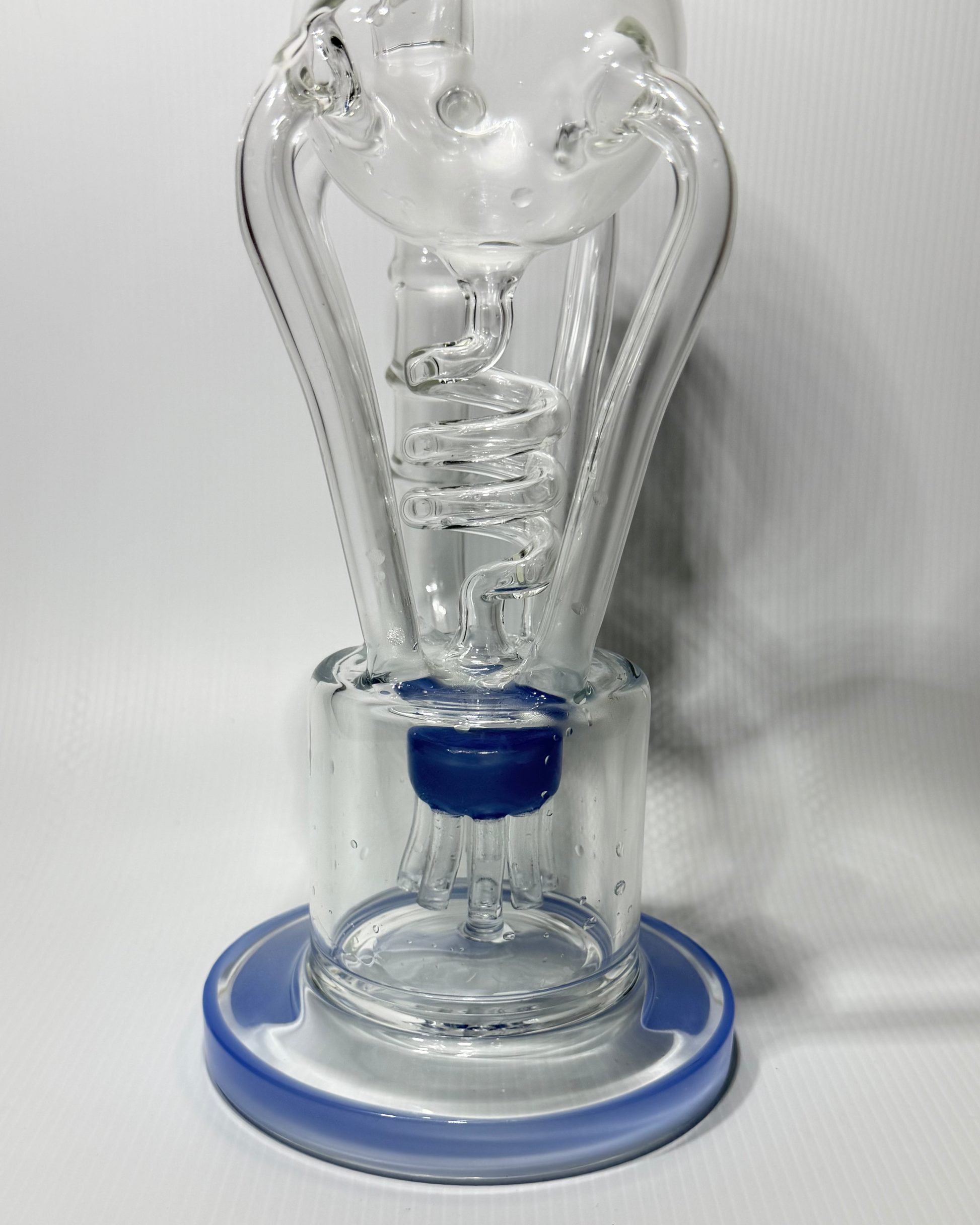 A sculptural recycler rig with spiral precision and splash-free flow. Built for smooth hits and serious visual impact, this piece blends function and artistry in one compact powerhouse.