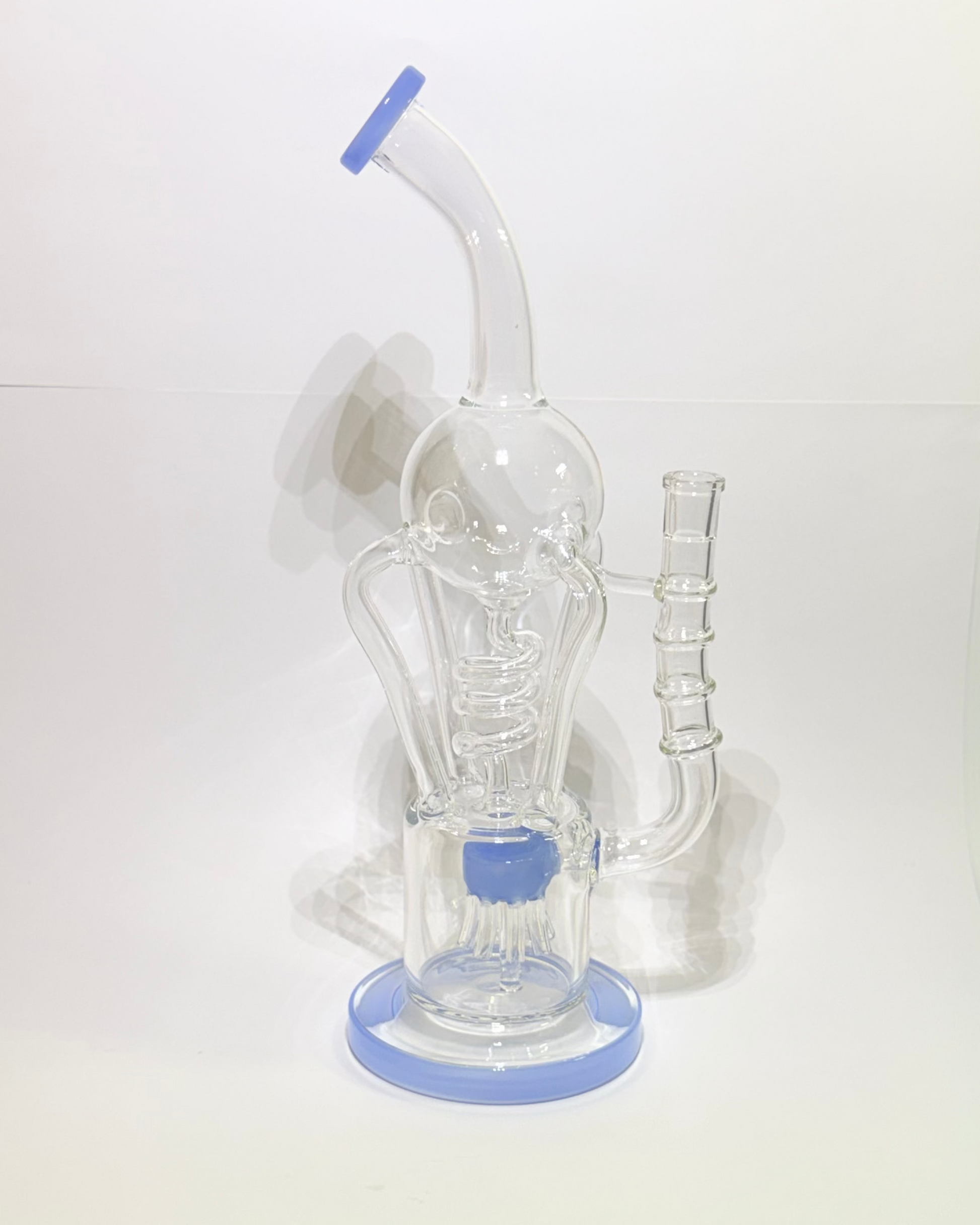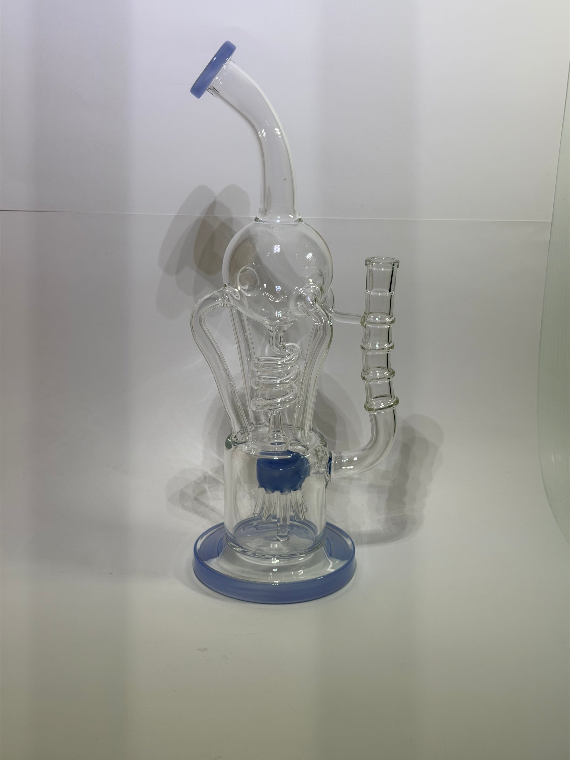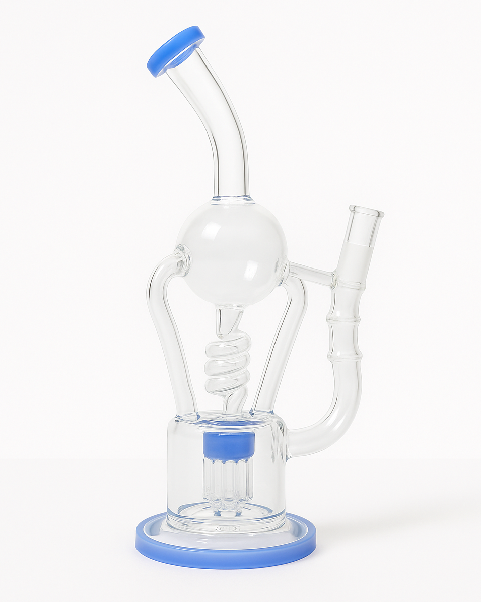 A sculptural recycler rig with spiral precision and splash-free flow. Built for smooth hits and serious visual impact, this piece blends function and artistry in one compact powerhouse.