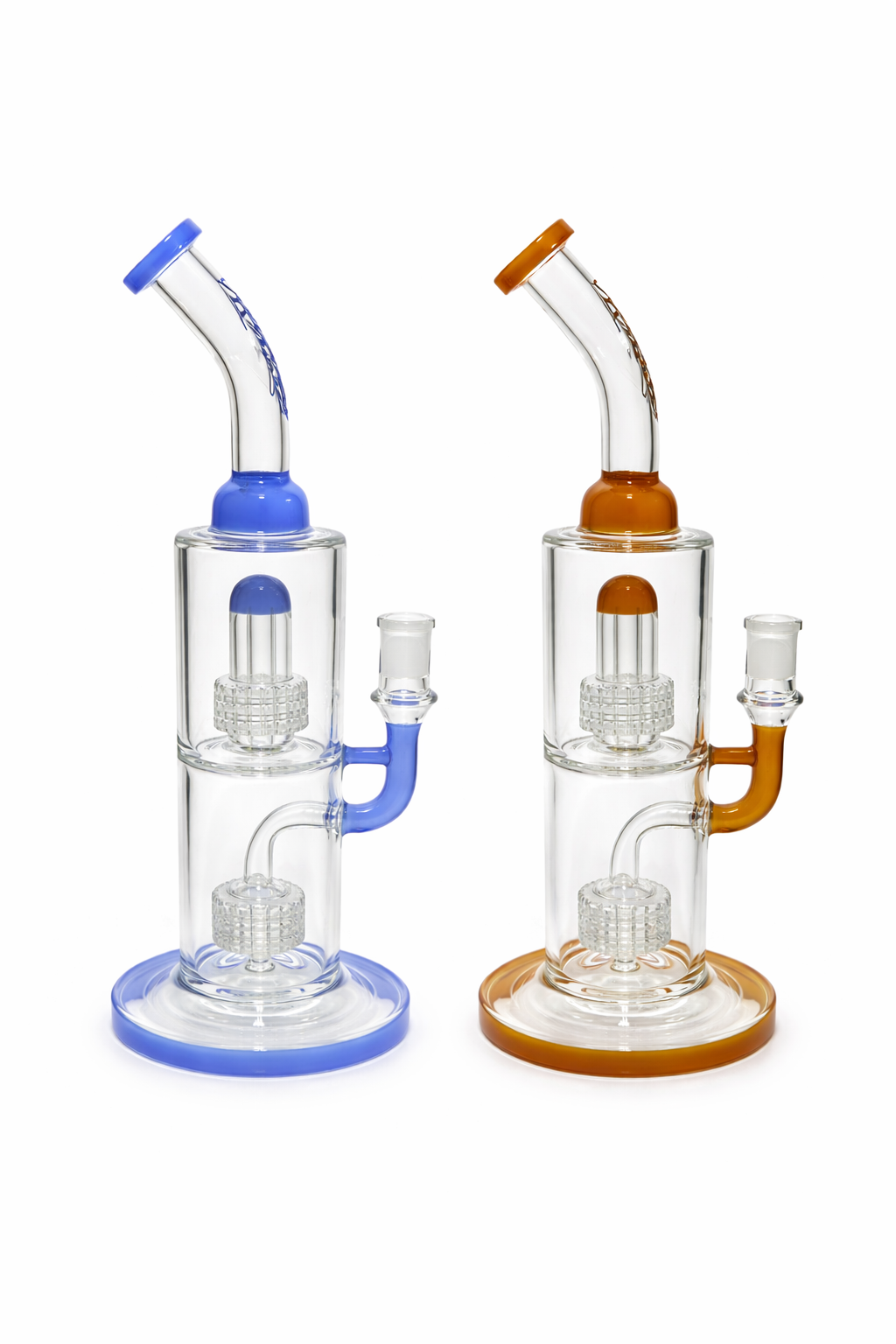 A premium 13” double matrix perc bong designed for ultra-smooth, low-drag hits. Dual percolators provide powerful filtration while vibrant blue accents give it a clean, high-end look.